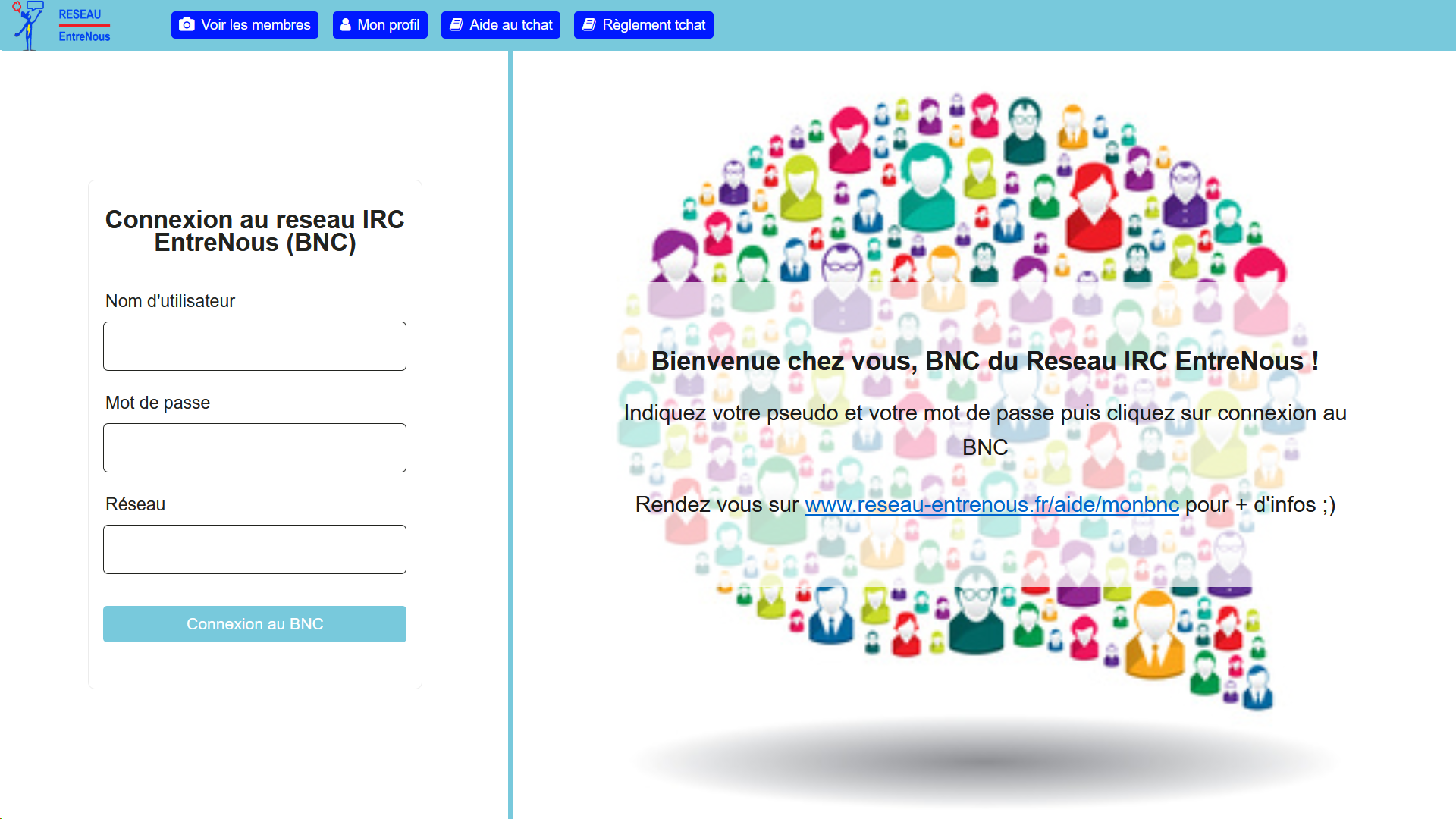 Après avoir entré vos informations de connexion, cliquez sur le bouton Connexion au BNC pour rejoindre le t`ch@t EntreNous.
